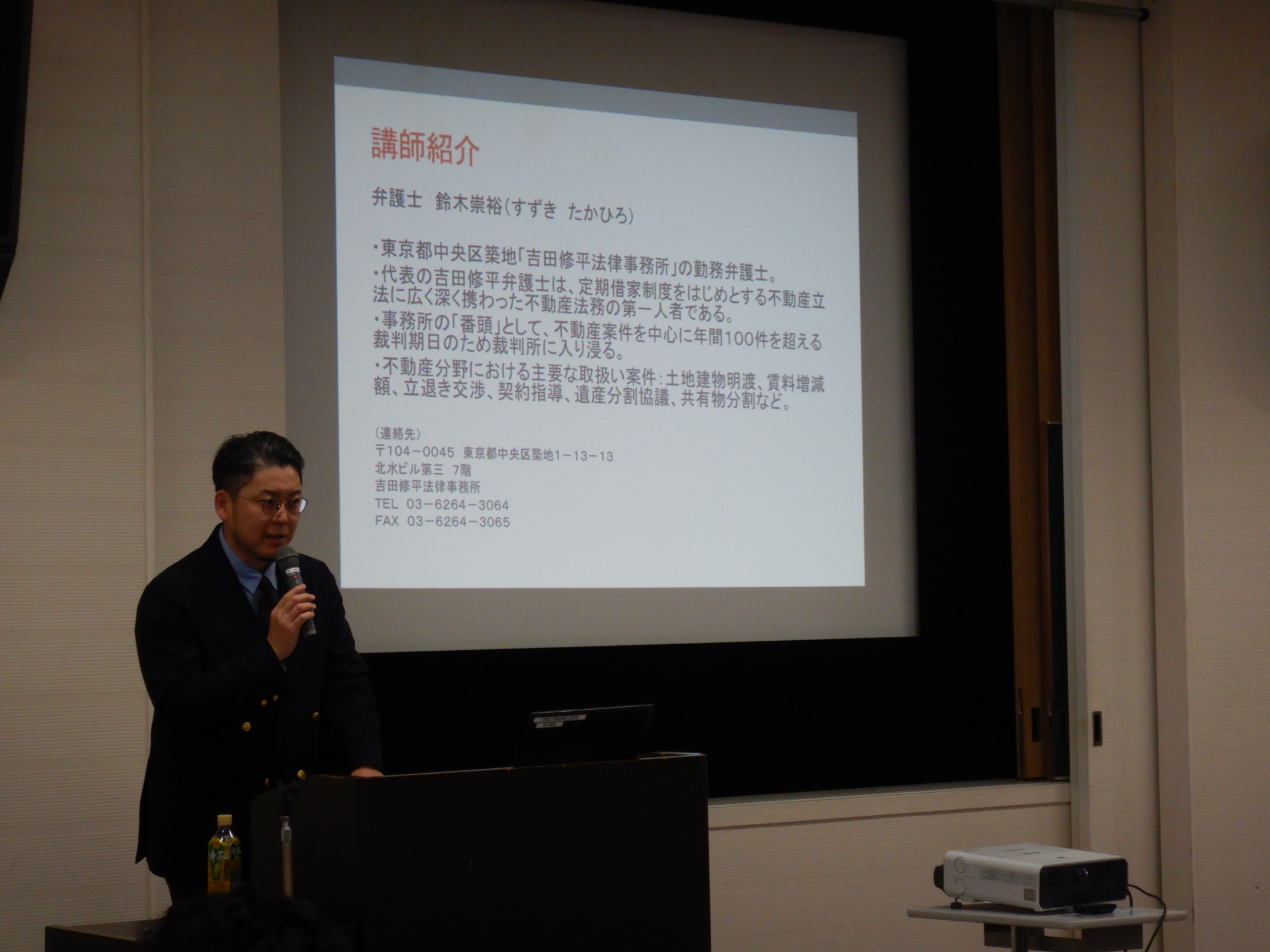 「すぐに役立つ 宅建業者のための 定期借家基礎知識」と題し、ご講演をいただきました。